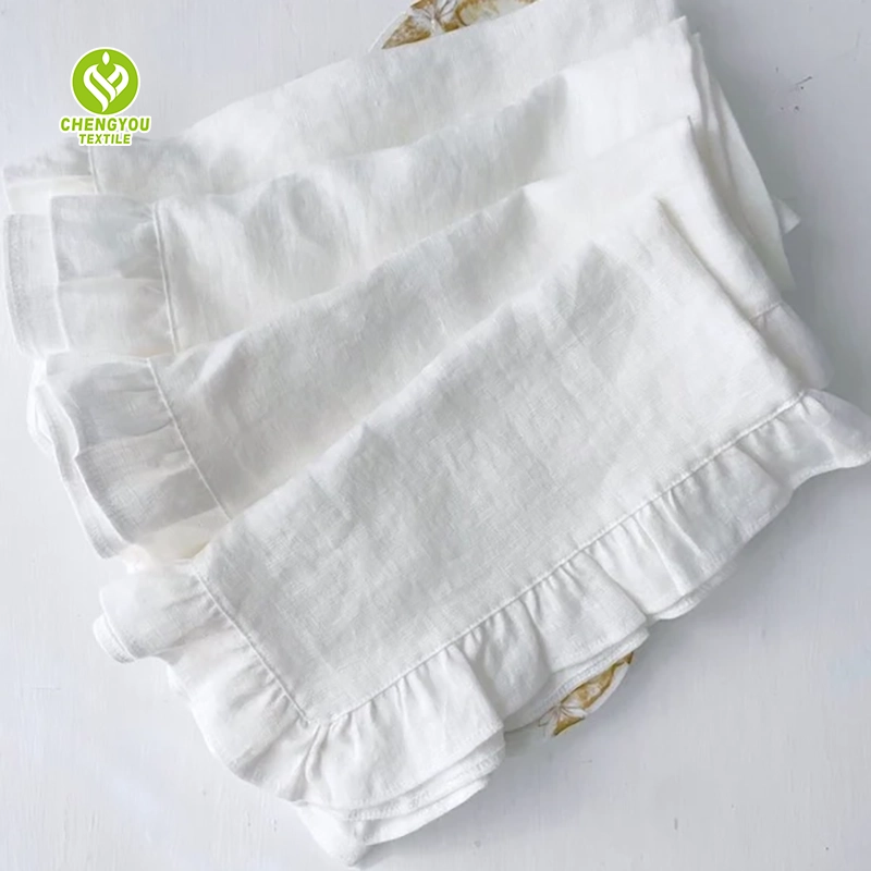 ผ้าเช็ดปากผ้าฝ้ายลินินขอบระบาย