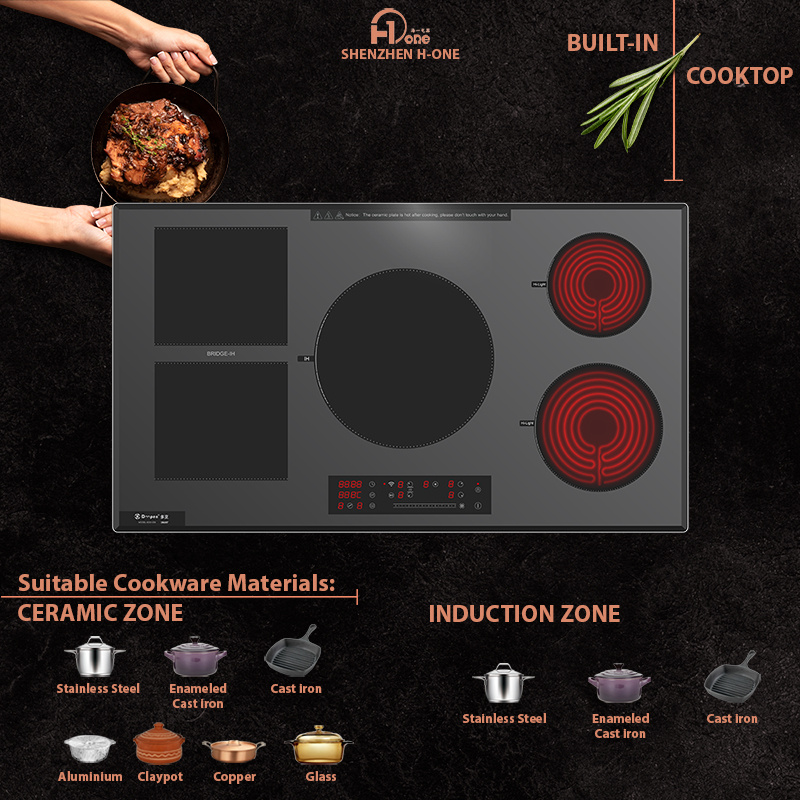 เตาไฟฟ้าอินดักชั่น+เซรามิกแบบไฮบริด 5 หัวเตา กำลังไฟสูง ควบคุมผ่าน WIFI พร้อมฟังก์ชั่นฮอตพอต ขายส่งจากโรงงาน