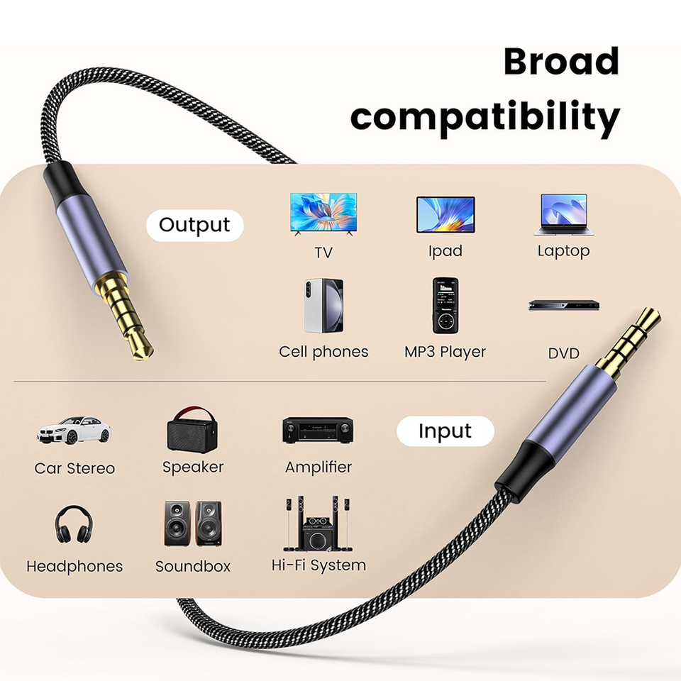 สายสัญญาณเสียงคุณภาพสูงแบบถักไนลอนชุบทอง หัวต่อ TRRS แบบแจ็คต่อแจ็ค ขนาด 3.5 มม. สำหรับเครื่องเสียงไฮไฟ ขายส่งจากโรงงาน