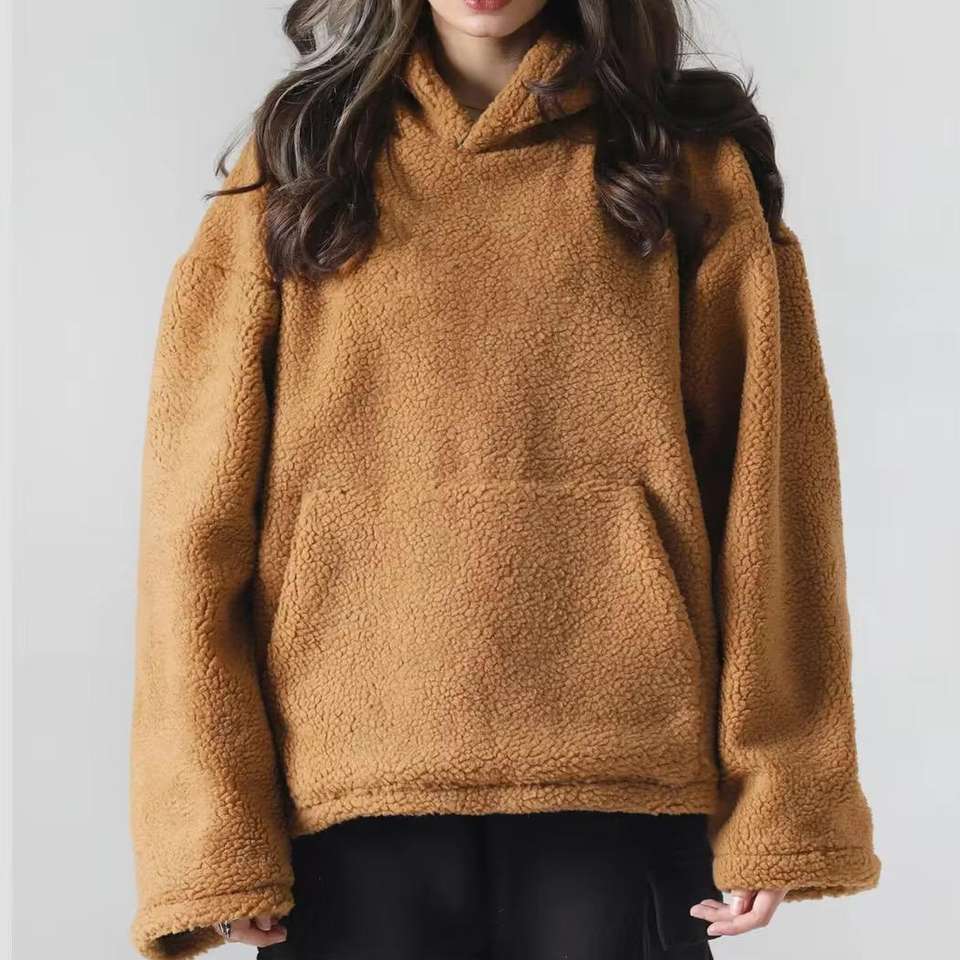 แจ็กเก็ตขนแกะไม่มีลายสำหรับผู้ชายแจ็กเก็ตมีฮู้ดหนาสำหรับฤดูหนาว