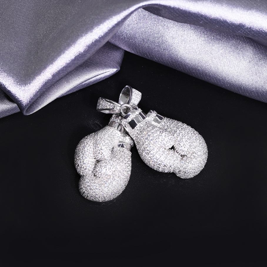 ขายส่งจากโรงงาน เครื่องประดับฮิปฮอป เงินแท้ 925 ประดับเพชรโมอิสซาไนต์ VVS ระยิบระยับ จี้รูปถุงมือชกมวย สำหรับผู้ชายและผู้หญิง