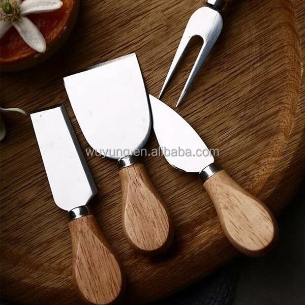 ชุดมีดหั่นชีสด้ามไม้มีดหั่นชีสสแตนเลสสำหรับใช้ในบ้านมีดหั่นพิซซ่า