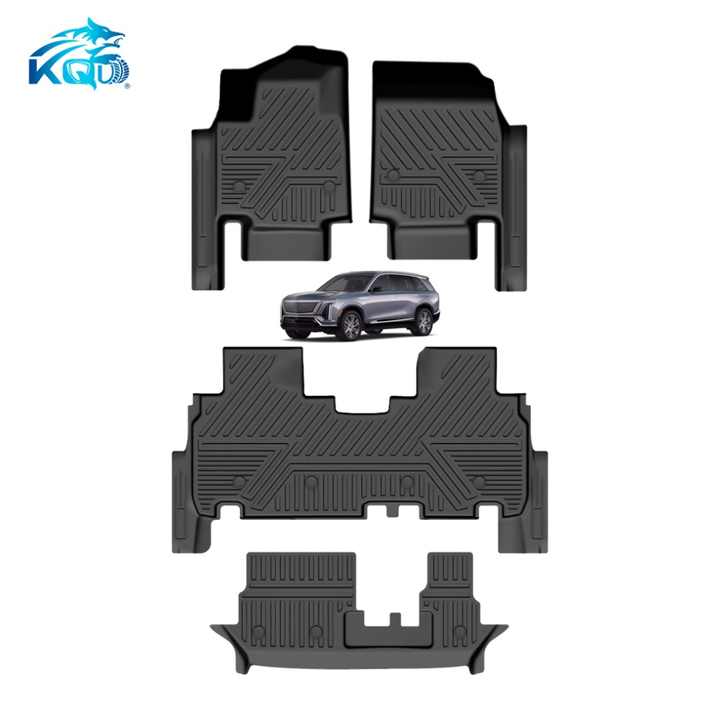 โรงงานขายส่งพรมปูพื้นรถยนต์ KQD TPE 5D 7D กันน้ำ 4 ชิ้น ชุดเต็ม ลายเรขาคณิต สำหรับ Cadillac Vistiq-Deep Dish ความหนา 3-3.5 มม.
