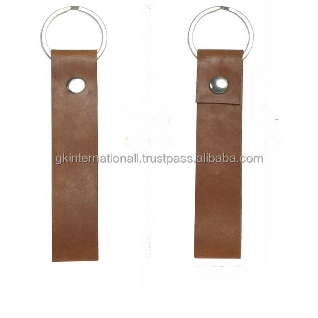 Factory Wholesale Key Chain Fob Hardware Metal Key Fob Hardware with Key Ring in Tan Finish Genuine Leather