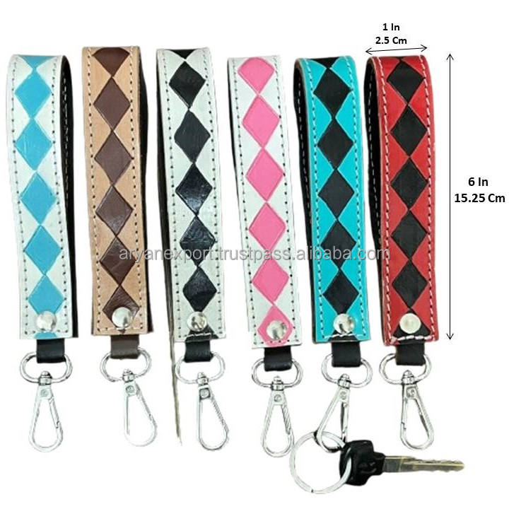 Product Name:Genuine Checkered Leather Wristlet Keychain