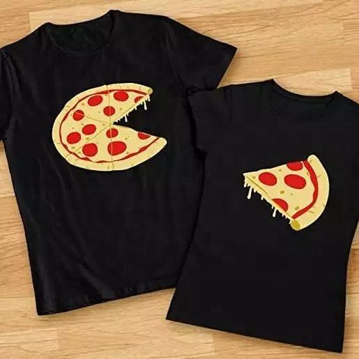 ชุดเสื้อยืดคู่สำหรับเขาและพิซซ่าของเธอ,เสื้อยืดคู่แบบสั่งทำจากโรงงานขายส่ง