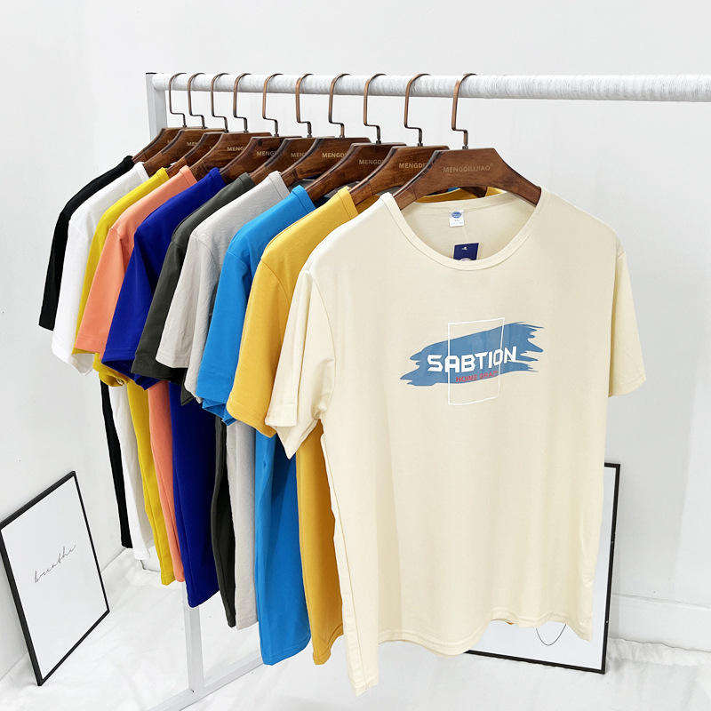 เสื้อยืดคอกลมแขนสั้นผู้ชาย ผ้าฝ้าย 100% ถักทอ ลายเรียบ โลโก้ด้านหน้า ระบายอากาศ แห้งเร็ว ขายส่งจากโรงงาน