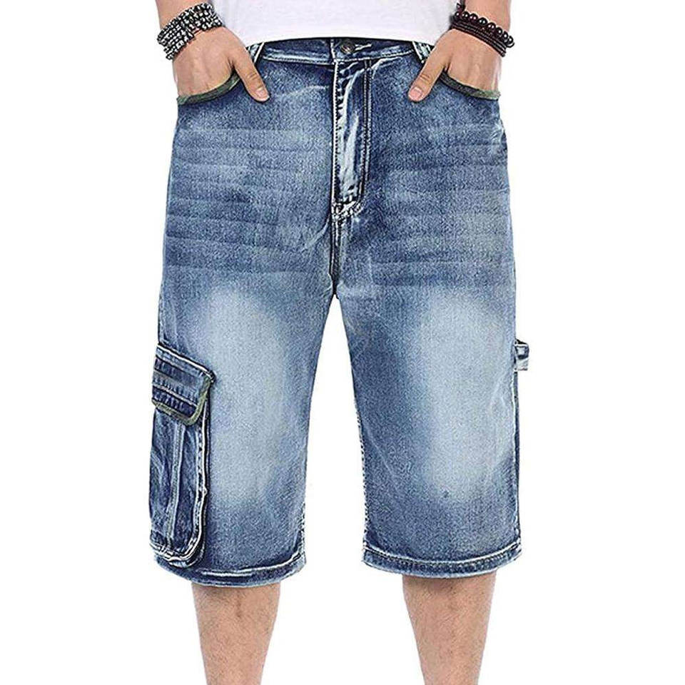 Factory Wholesale Men's Casual Blue Denim Shorts with Multi-Bag Stripe Design Customized Streetwear for Summer