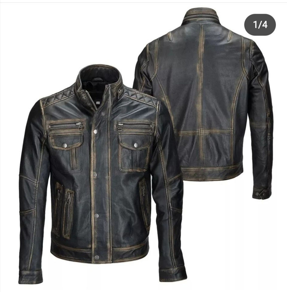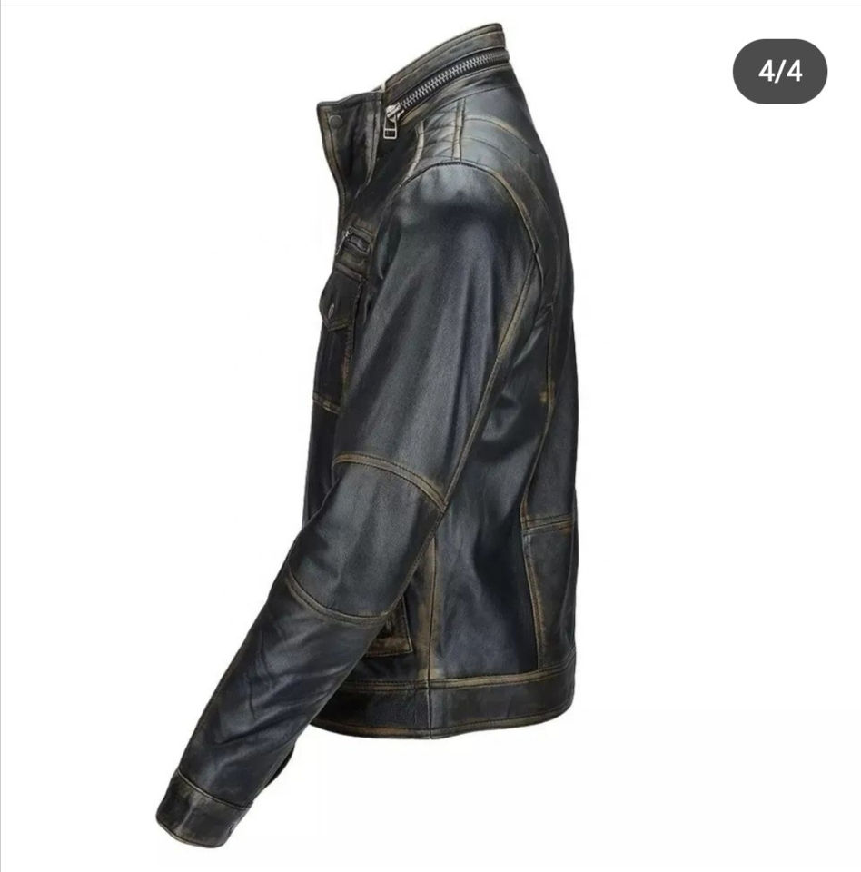 แจ็คเก็ตหนังผู้ชายขายส่งจากโรงงาน สำหรับนักขี่มอเตอร์ไซค์ หนังแกะแท้คุณภาพสูง ดีไซน์แบบดิสเทรส