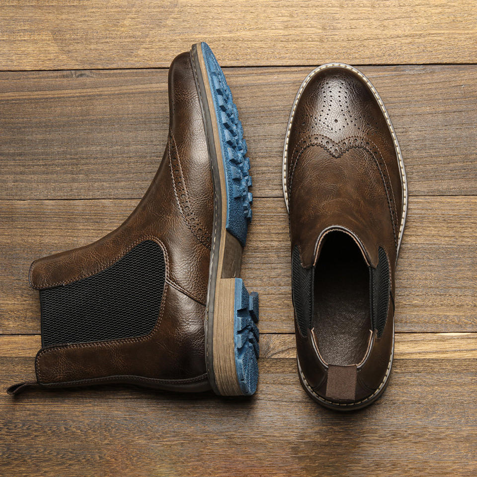 รองเท้าบูทเชลซีหนัง PU สำหรับผู้ชายรองเท้าบูทหุ้มข้อส้นสูงแบบย้อนยุคใหม่ล่าสุด