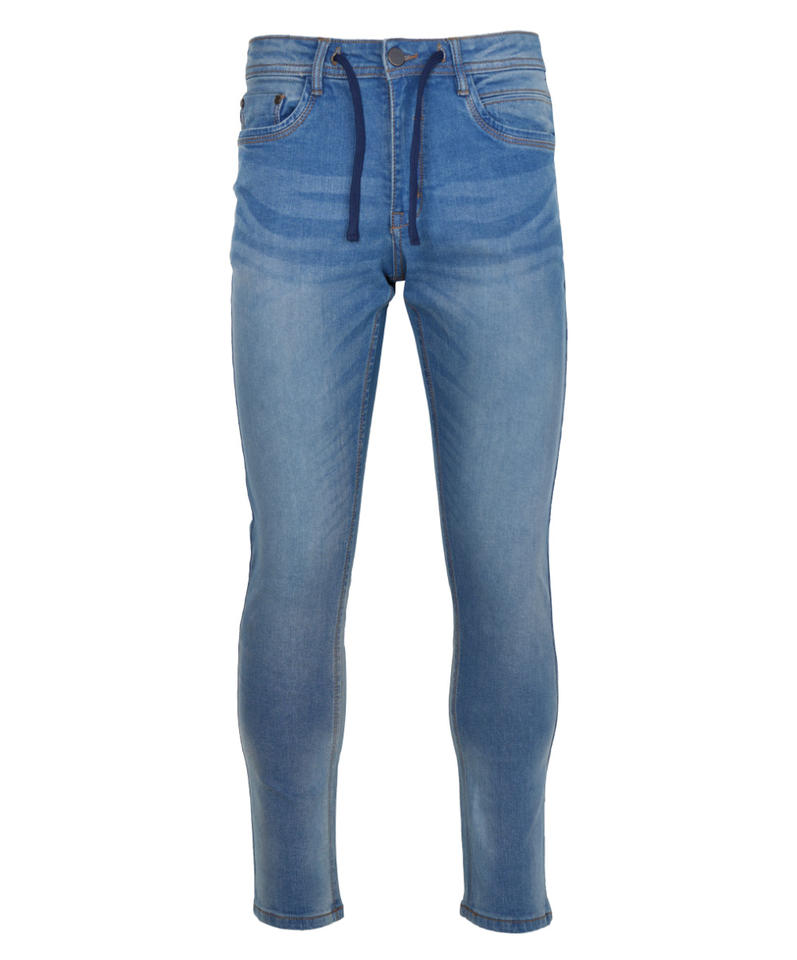 กางเกงยีนส์กระเป๋าคาร์โก้สีน้ําเงินกรมท่าสําหรับเด็กกางเกงเอวยางยืดและขา