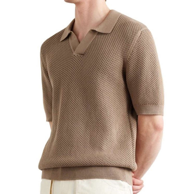 เสื้อยืดคอตตอนโพลีเอสเตอร์สำหรับผู้ชายเสื้อโปโลแขนสั้นผ้าถักลายรังผึ้งสำหรับฤดูร้อน