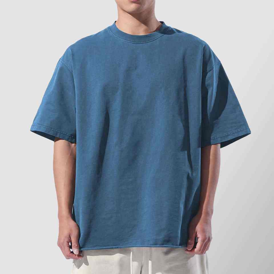 เสื้อยืดสำหรับผู้ชายผ้าถักลายสีทึบพิมพ์โลโก้ซักได้