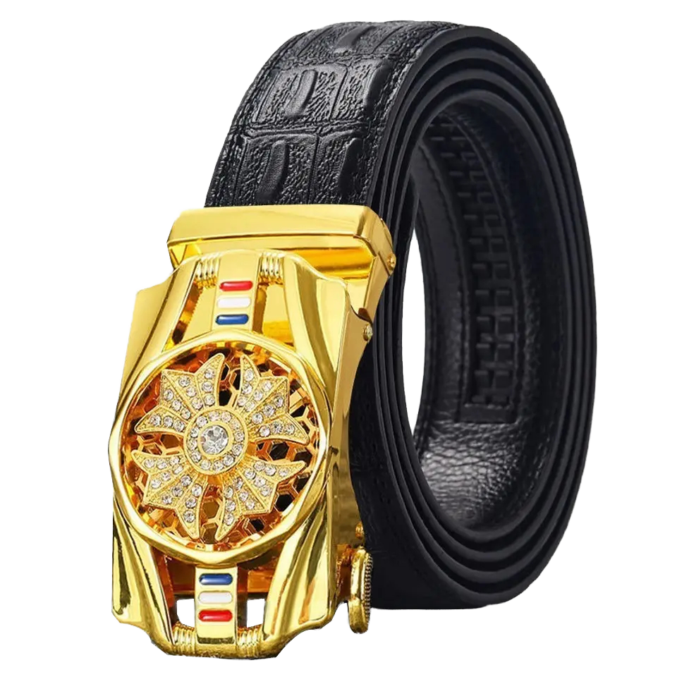 เข็มขัดหนังแท้สำหรับผู้ชายหนังแท้แบบวินเทจหนังวัวพียูพร้อมอัลลอยไร้ฟันอัตโนมัติสำหรับหัวเข็มขัดดีไซน์ใหม่