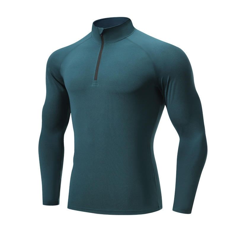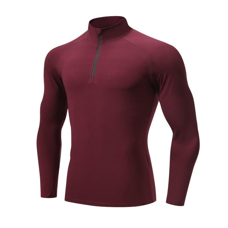 เสื้อยืดรัดรูปแขนยาวรูดซิปสำหรับผู้ชายเสื้อยืดผ้าโพลีเอสเตอร์สแปนเด็กซ์ถักแบบปรับแต่งได้