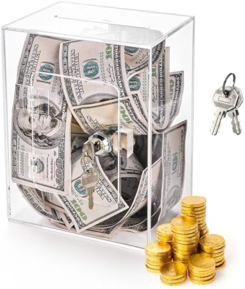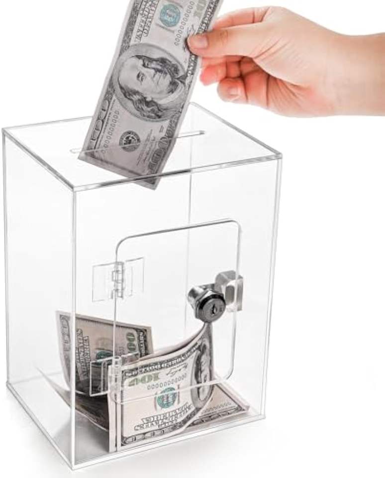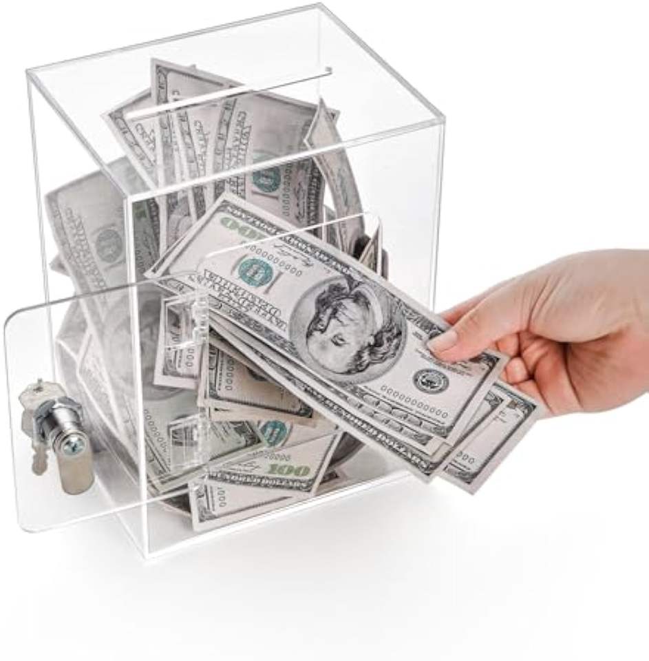 กระปุกออมสินอะคริลิคสีใสขนาดใหญ่ทรงสี่เหลี่ยมแบบมีล็อกทันสมัย