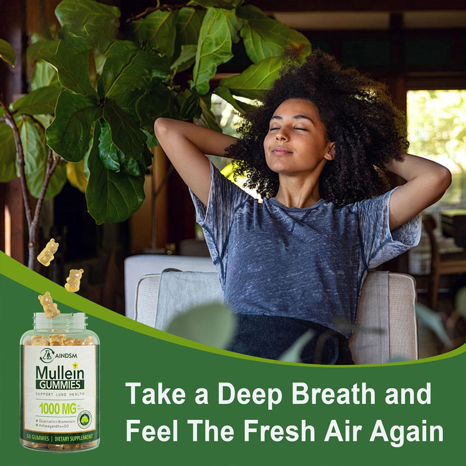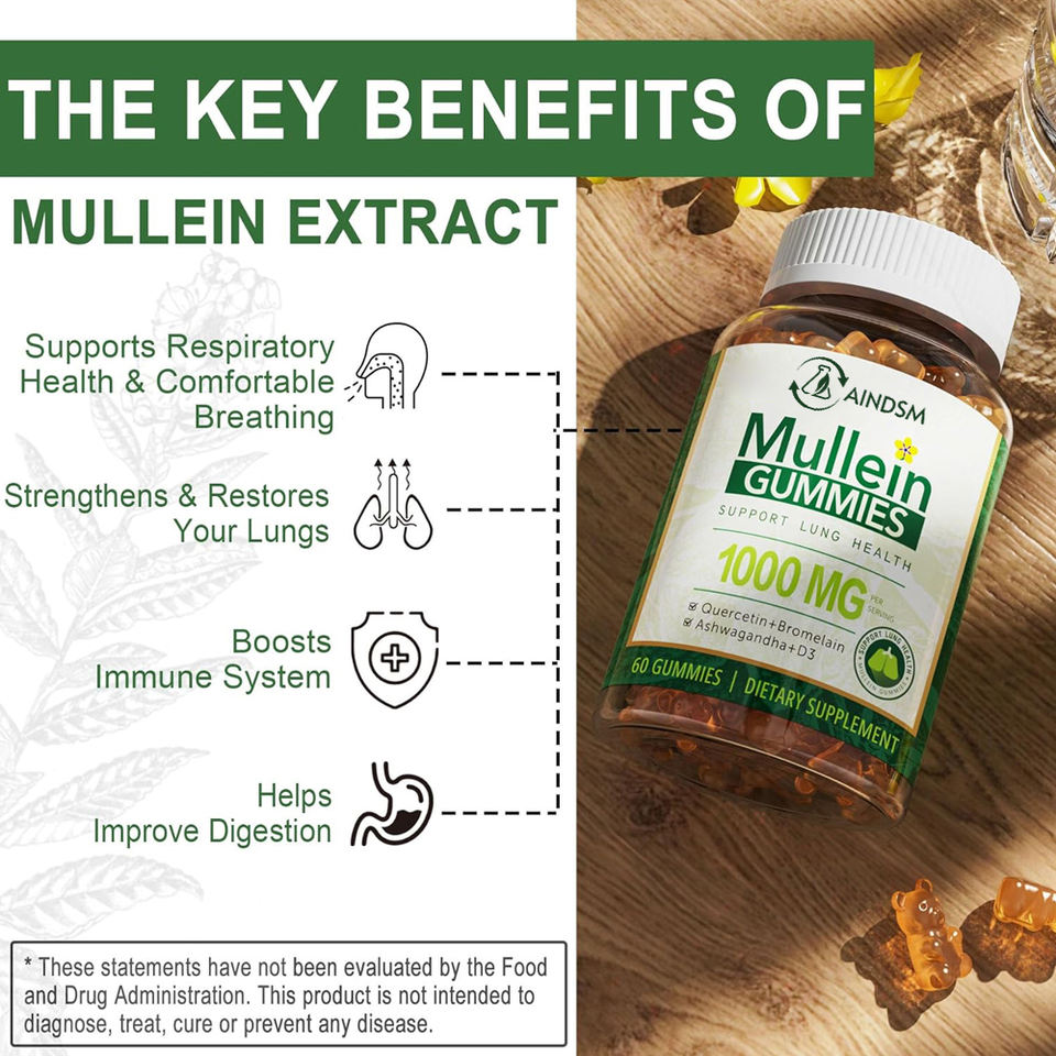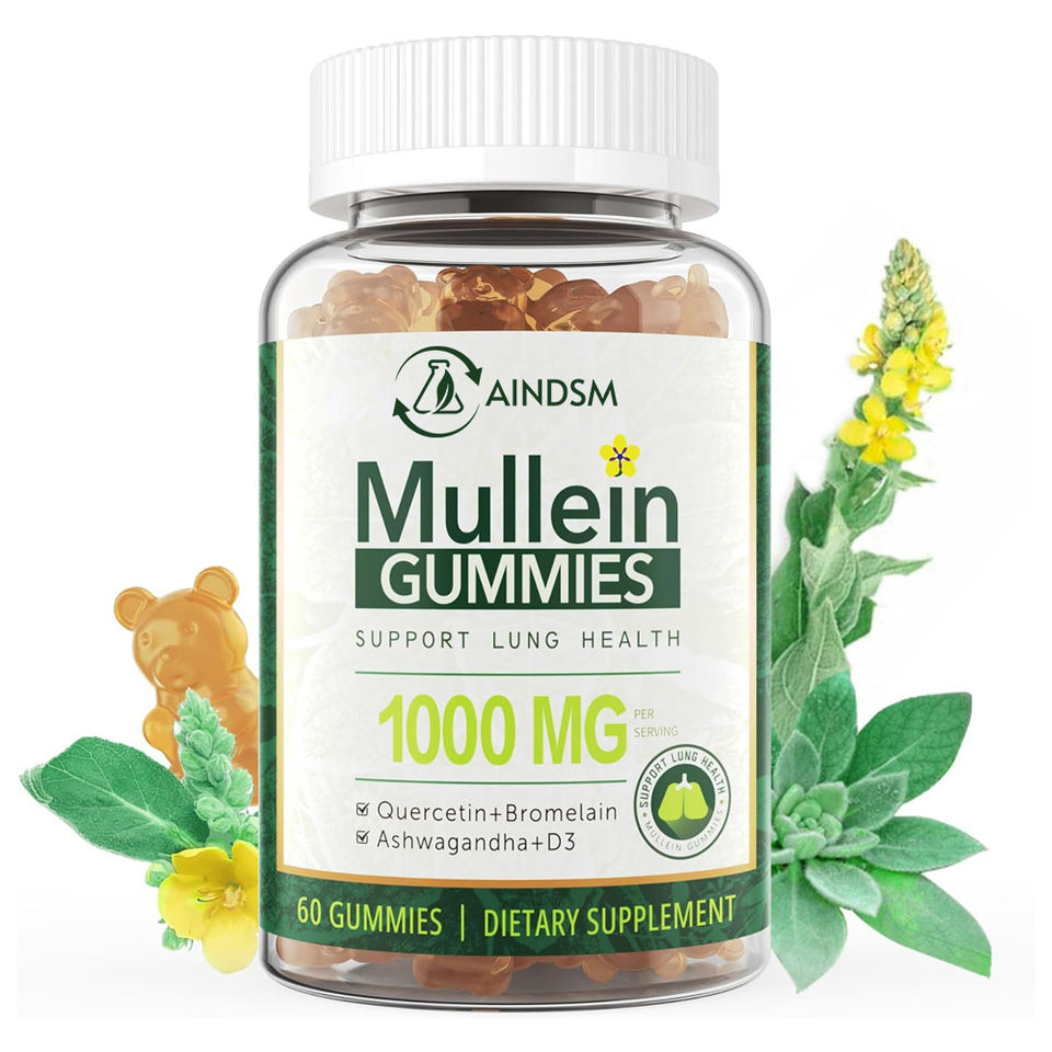 Factory Wholesale Mullein Quercetin Ashwagandha Gummy Mullein Extract Gummy Support Lungs Health Mullein Leaf Gummies