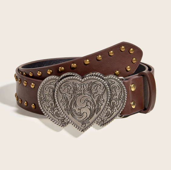 เข็มขัดแฟชั่นพังก์วินเทจแบบกว้างพร้อมหัวเข็มขัดรูปหัวใจโลหะผสมเข็มขัดส่วนตัวของผู้หญิงอินเทรนด์