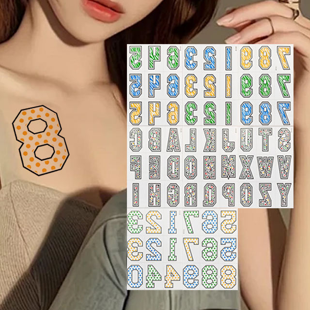 สติ๊กเกอร์แทททูตัวอักษรและตัวเลข ขายส่งจากโรงงาน ลายหรูหรา ติดตัว แขน อก แต่งหน้า กันน้ำ สีสันสดใส สำหรับมือ เท้า แทททูปลอมชั่วคราว