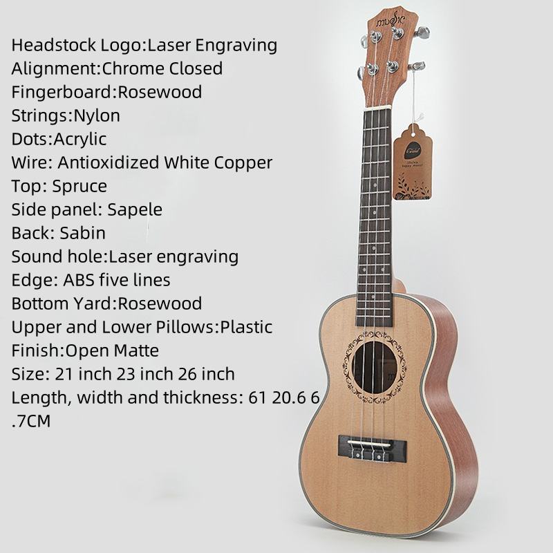 โรงงานขายส่ง OEM/ODM ยี่ห้อรุ่น FU-20 21 23 26 นิ้ว อูคูเลเล่ฮาวายแบบพกพา