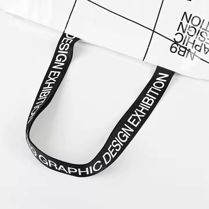 ถุงผ้าทำจากพลาสติก PP ถุงช้อปปิ้งแบบด้ามจับคู่สำหรับร้านขายของชำพร้อมโลโก้แบบกำหนดเองได้ขนาดใหญ่