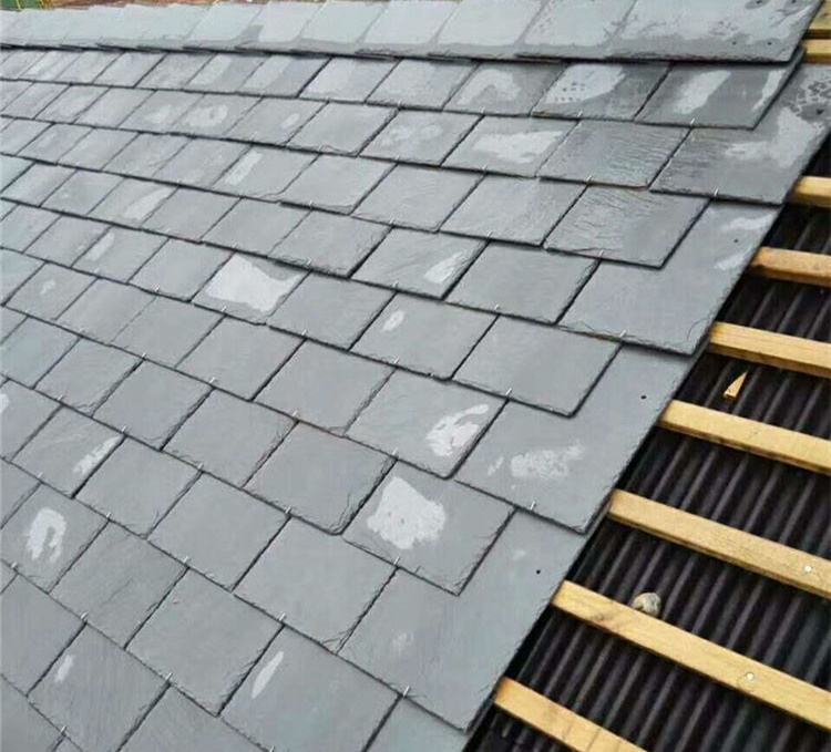 กระเบื้องหลังคาหินชนวนสีดำธรรมชาติ ยี่ห้อ POXING สำหรับหลังคาวิลล่า ขายส่งจากโรงงาน - กันน้ำและป้องกันรังสียูวี ความหนา 7-11 มม.