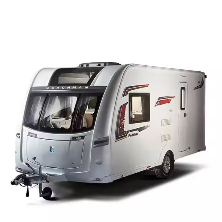 โรงงานขายส่งรถบ้านเคลื่อนที่ยอดนิยม รถคาราวาน รถพ่วงสำหรับเดินทาง ห้องนอนเดียว พร้อมเครื่องปรับอากาศ มาตรฐานไอเสีย EURO 5 ราคาถูก