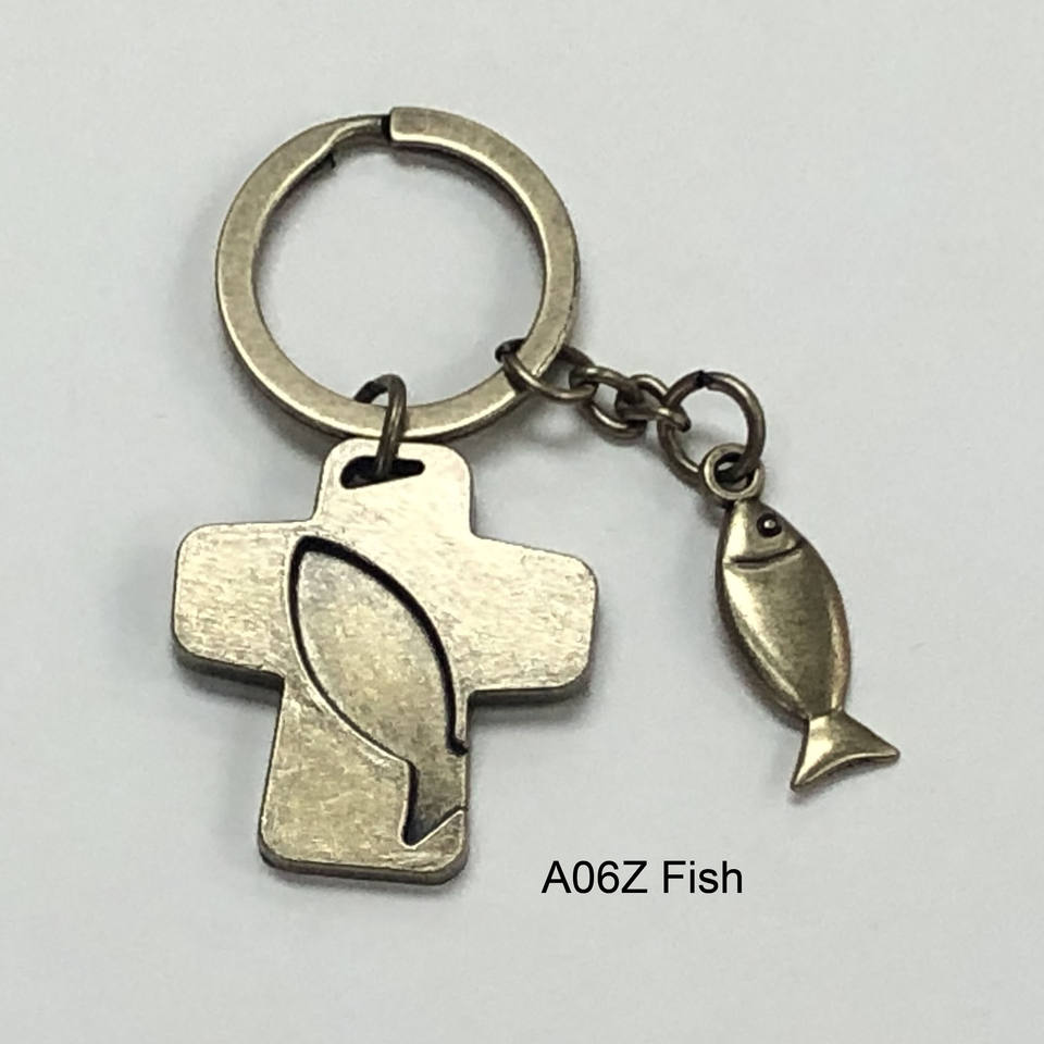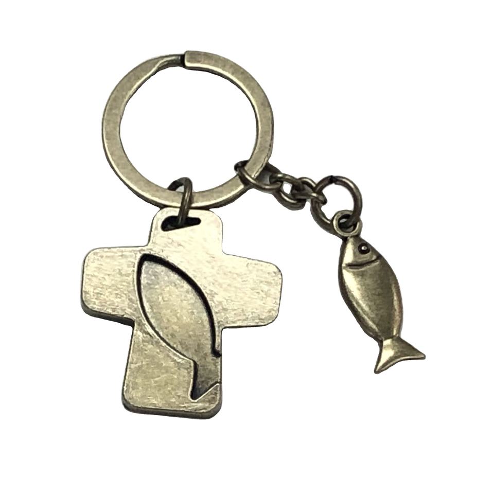 โรงงานขายส่งคุณภาพระดับพรีเมียมหรูหราบรอนซ์ข้ามและปลาศิลปะกุญแจหัวเข็มขัดโลหะหัตถกรรม Keyholder สําหรับกระเป๋าเป้สะพายหลัง