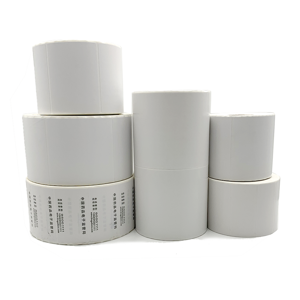 ฉลากวันหมดอายุบนม้วนสติกเกอร์แบบมีกาวในตัวพิมพ์โลโก้