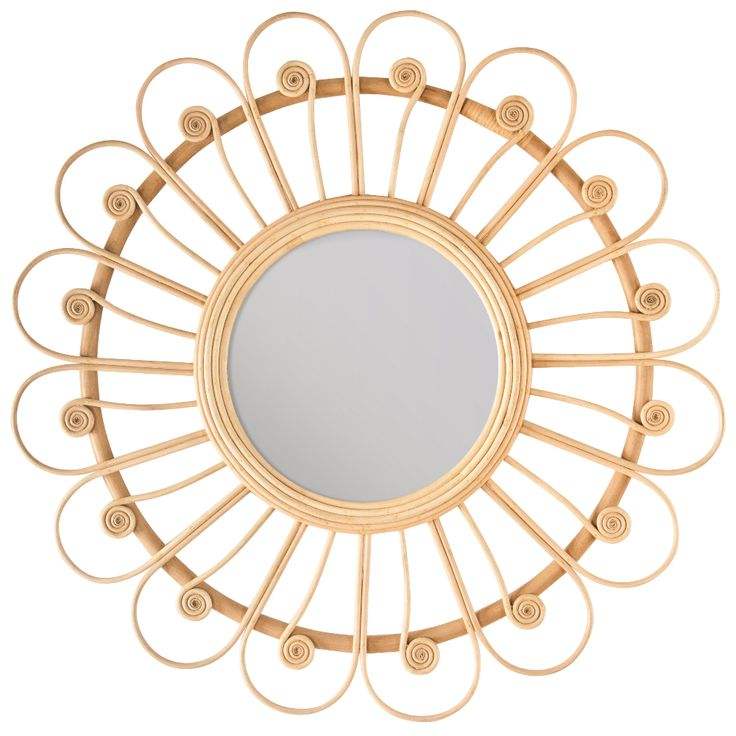 กระจกหวายทรงกลมแขวนผนังกระจกโบฮีเมียนสไตล์โบฮีเมียนแบบแขวนผนัง
