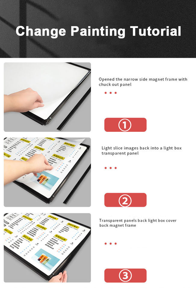 โรงงานขายส่งป้ายไฟ LED แบบดึงขึ้น รูปทรงสี่เหลี่ยมผืนผ้า อลูมิเนียม A1 A2 A3 A4 ป้ายโฆษณาบางเฉียบ ป้ายเมนู ป้ายแสดงผลงาน ได้รับการรับรองมาตรฐาน CE RoHS