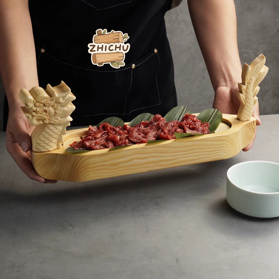 ถาดเสิร์ฟซูชิแบบญี่ปุ่นสำหรับร้านอาหาร ขายส่งจากโรงงาน ถาดไม้รูปเรือสำหรับเสิร์ฟซูชิและซาชิมิ
