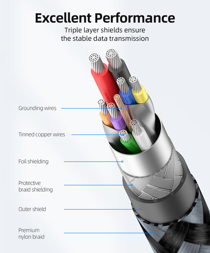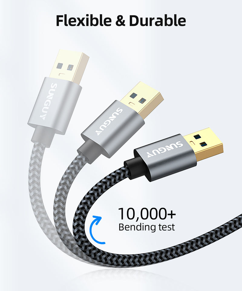 สายชาร์จ SUNGUY แบบถักไนลอนทนทาน ประเภท A ความเร็ว 5Gbps สายดาต้า USB ความเร็วสูง สำหรับแล็ปท็อป เดสก์ท็อป และทีวี