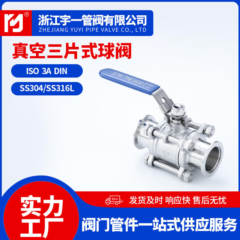 วาล์วบอลสุญญากาศสแตนเลสเกรดสุขภัณฑ์แบบสามชิ้น 304/316 ขายส่งจากโรงงาน มีส่วนลดสำหรับการสั่งซื้อจำนวนมาก
