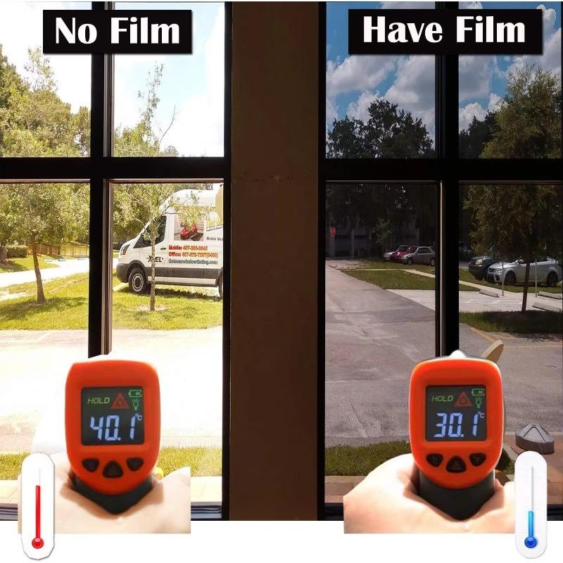 ฟิล์มกระจกมองเห็นทางเดียวแบบติดเองสำหรับโรงแรม ป้องกันความร้อน ป้องกันรังสียูวี สีเงินสะท้อนแสง ขายส่งจากโรงงาน