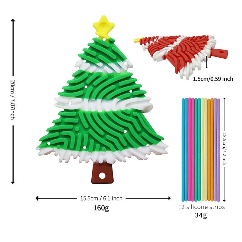 ขายส่งจากโรงงาน ของเล่นเสริมพัฒนาการสัมผัสสองด้าน 100 ชิ้น สำหรับเด็กออทิสติก สีเขียวแดง ขนาด 15x20 ซม. กระดานกิจกรรมต้นคริสต์มาสทำจากซิลิโคน