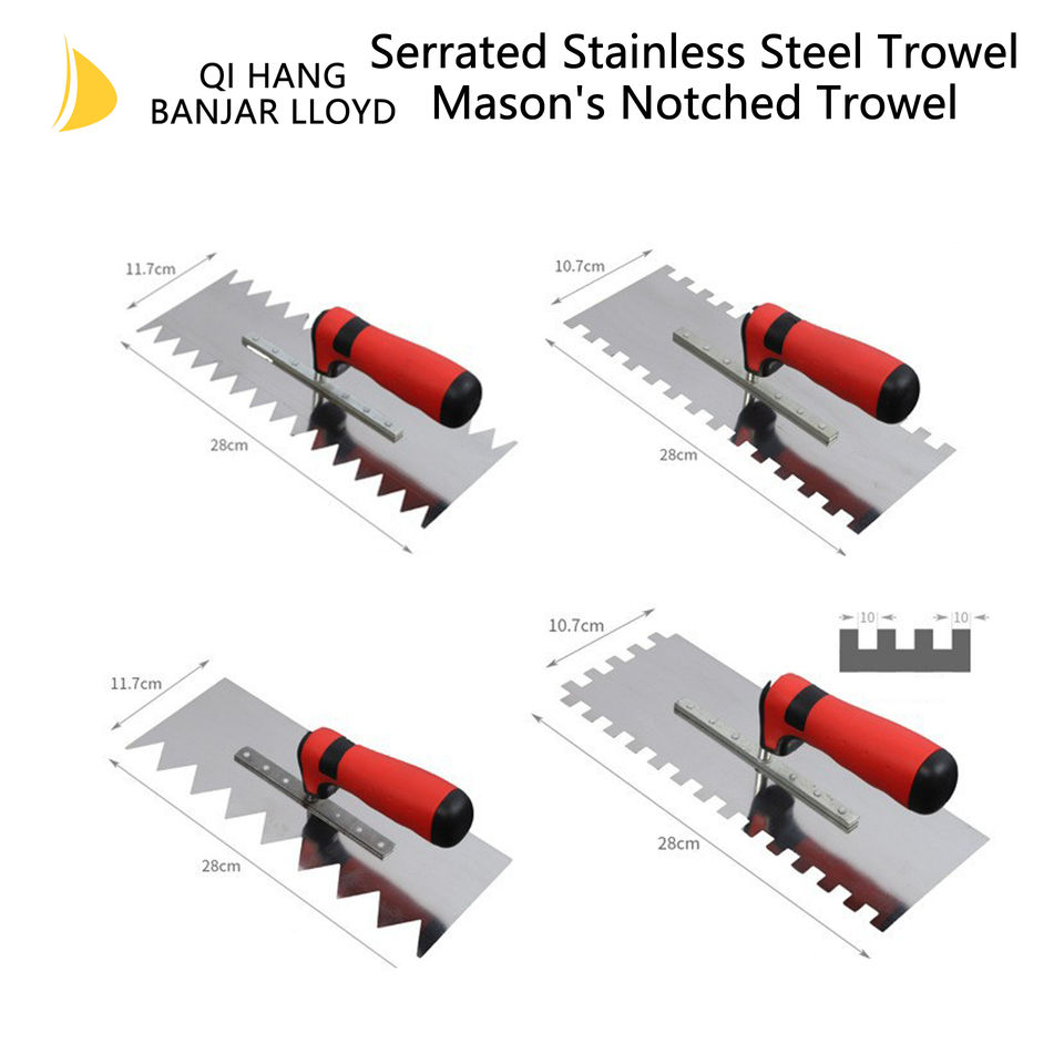 เกรียงฉาบปูนสแตนเลสแบบมีฟันหยัก ด้ามยาง สำหรับงานปูกระเบื้องและฉาบปูน ขายส่งจากโรงงาน รับผลิตตามแบบ