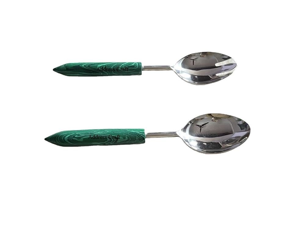 ชุดเซ็ตสลัดสแตนเลสมีด้ามจับหินมาลาไคท์เครื่องมือเครื่องใช้บนโต๊ะอาหารช้อนสลัดเสิร์ฟในครัว