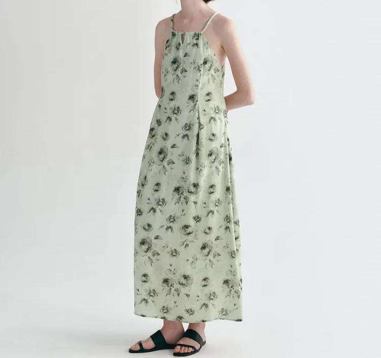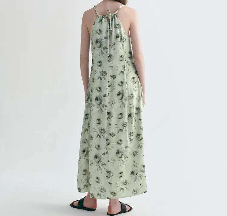 ชุดแม็กซี่เดรสลำลองสีเขียวเรียบง่ายชุดเดรสยาวเข้ารูประบายอากาศได้สำหรับฤดูร้อน
