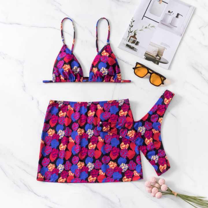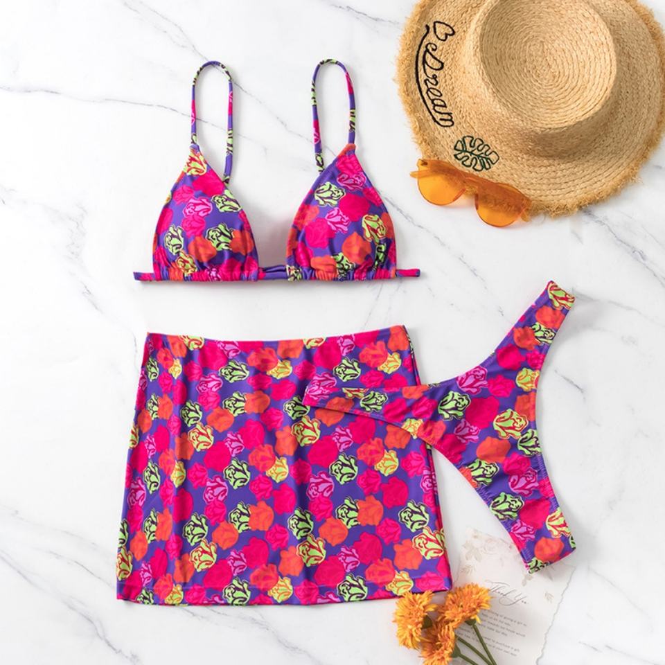 ชุดว่ายน้ำสามชิ้นไซส์ใหญ่ขายส่งจากโรงงาน พร้อมเสื้อคลุมชายหาด บิกินี่ไมโครแบบสาวนักเรียน บราดันทรง ลายเสือดาวและลายทาง