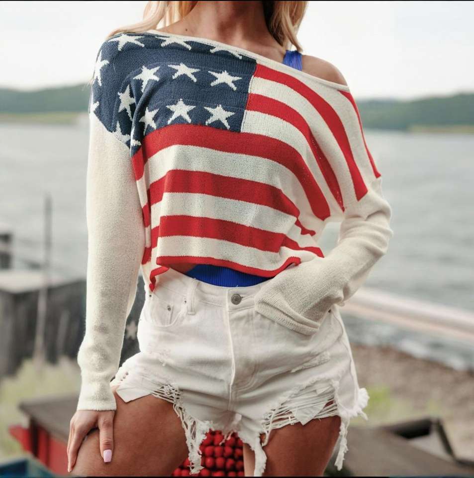สเวตเตอร์ถักลายดาวสำหรับผู้หญิงสไตล์ยุโรปและอเมริกาสำหรับฤดูใบไม้ผลิพร้อมโลโก้ด้านหน้า