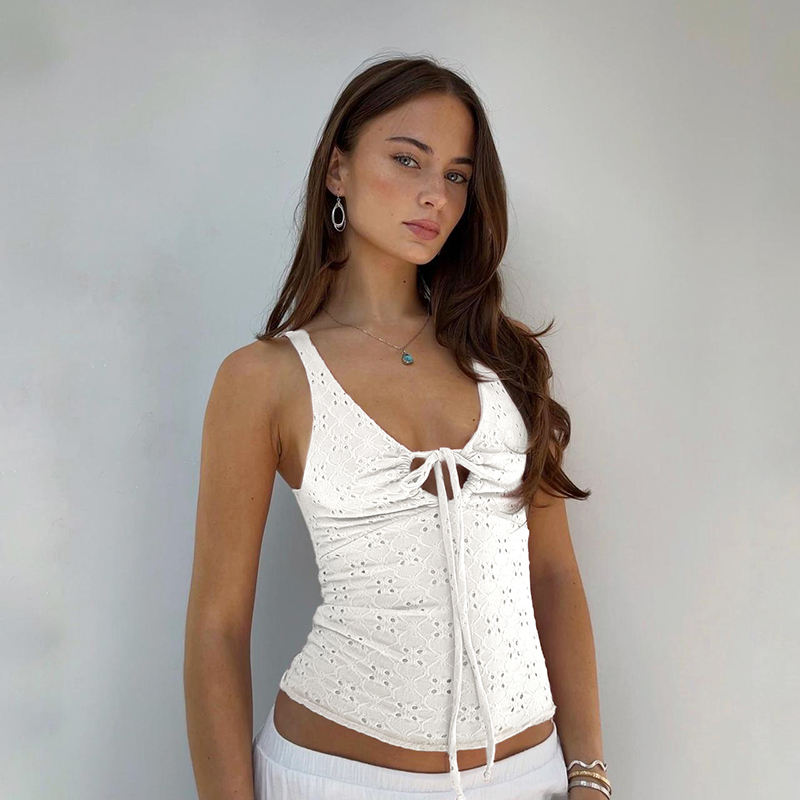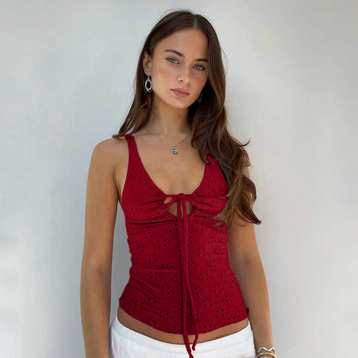 เสื้อครอปเซ็กซี่แบบผูกเชือก สีพื้น สำหรับผู้หญิง ขายส่งจากโรงงาน ดีไซน์เว้าช่วงตัว เหมาะสำหรับใส่ไปเที่ยวคลับ ปาร์ตี้ยามค่ำคืน รับผลิตแบบ OEM