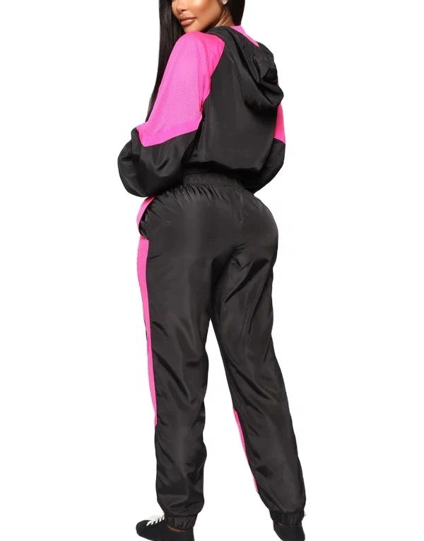 โรงงานผลิตชุดวอร์มกันลมผู้หญิงขายส่ง ชุดออกกำลังกายแบบกำหนดเอง ชุด 2 ชิ้น ชุดวอร์มกันลมผู้หญิงสีตัดกัน