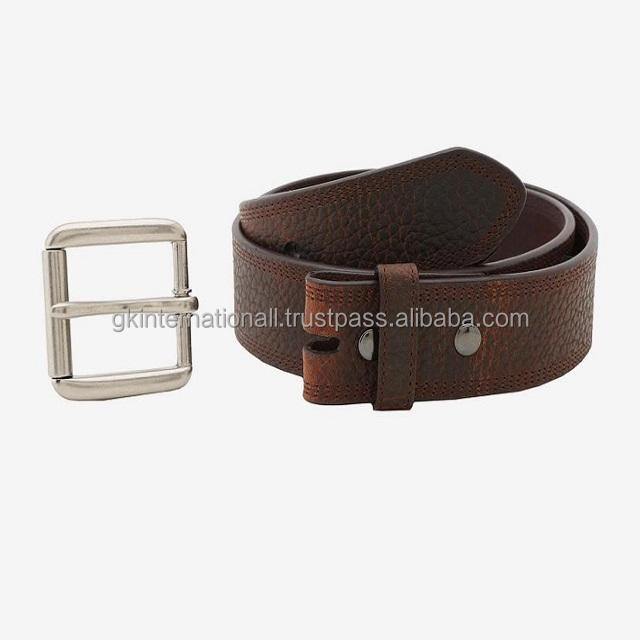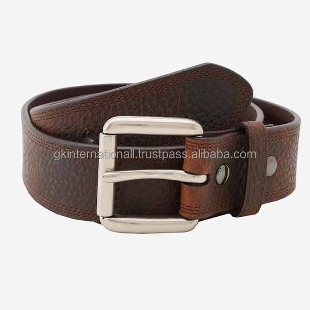 เข็มขัดหนังแฮนด์เมด,ทำจากหนังสีน้ำตาลสำหรับผู้ชายพร้อมหัวเข็มขัดชุบเงิน