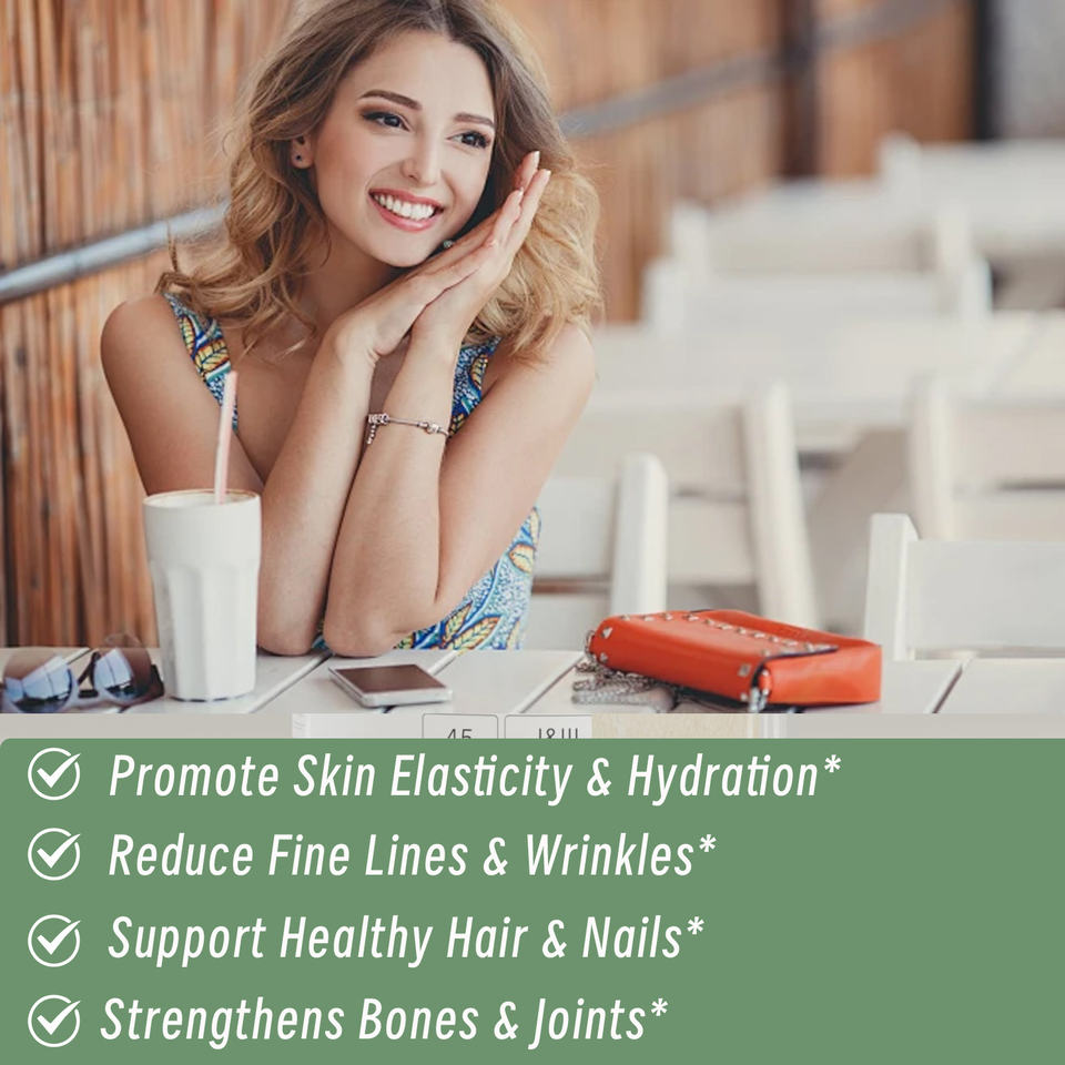 ประโยชน์ของผลิตภัณฑ์:เจริญเติบโตของเส้นผม, ผิวกระจ่างใส, การสนับสนุนสุขภาพทางเดินอาหาร, ผิวชุ่มชื้น, การสนับสนุนด้านสุขภาพลำไส้, การเจริญเติบโตของเล็บ, รองรับกระดูกและข้อต่อ, สนับสนุนสุขภาพหัวใจ, การจัดการการเผาผลาญ
