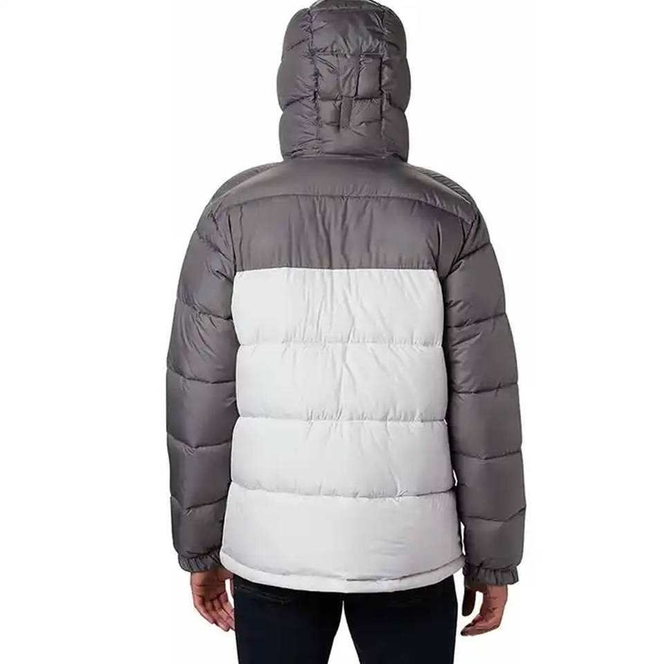 แจ็คเก็ตขนเป็ดมีฮู้ดสำหรับผู้ชายมาใหม่มีโลโก้ด้านหน้าปรับแต่งได้แขนยาวระบายอากาศเป็นมิตรกับสิ่งแวดล้อม
