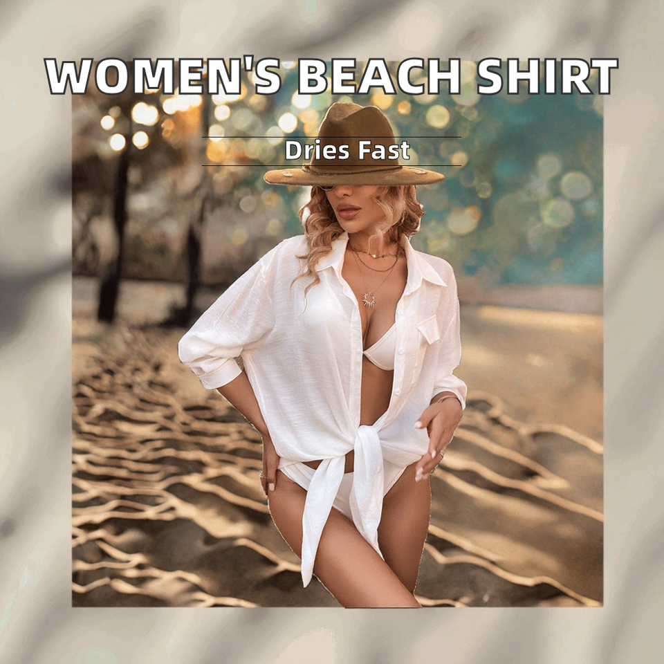 ชุดคลุมบิกินี่ลายเรียบสำหรับผู้หญิง ผลิตจากโรงงาน ผ้าย้อมสีพื้น 1 ชิ้น ติดกระดุมโลโก้ด้านหน้า เป็นมิตรกับสิ่งแวดล้อม ป้องกันรังสียูวี ผลิตจากโพลีเอสเตอร์ 100%