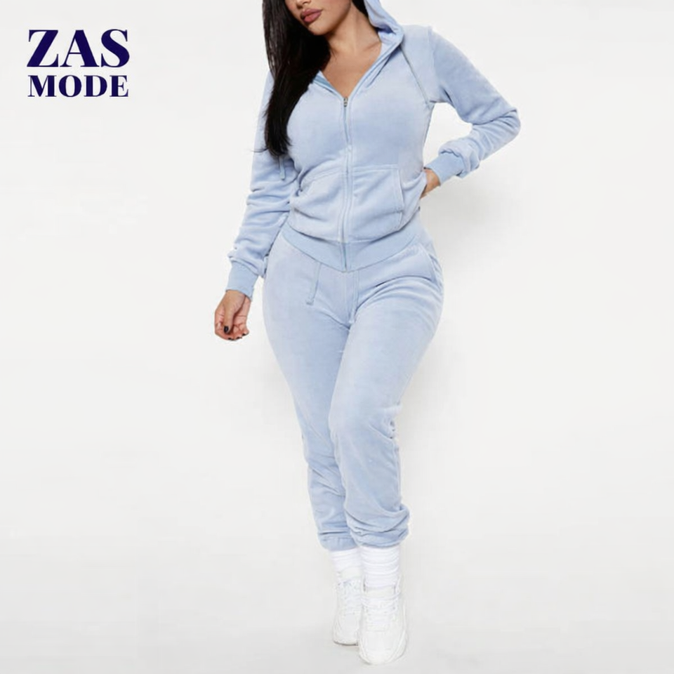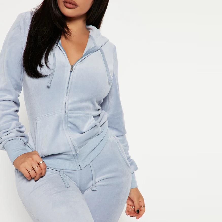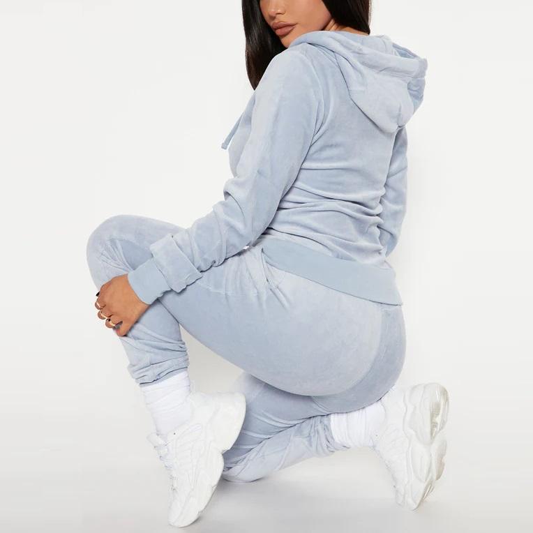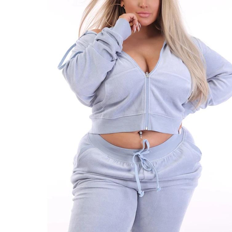 ชุดเซ็ตสเวตสูทกำมะหยี่แบบลำลองสำหรับผู้หญิงไซส์ใหญ่สำหรับฤดูหนาว สไตล์สตรีทแวร์ 2 ชิ้น พร้อมปักโลโก้ตามสั่ง