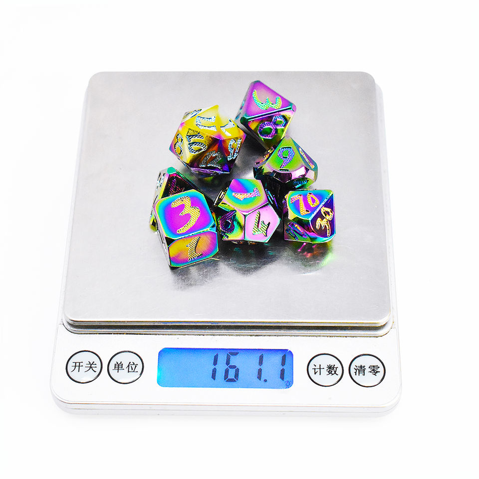 ชุดลูกเต๋าโลหะหลายชั้นทำจากสังกะสีอัลลอยจำนวนมากอุปกรณ์เสริมสำหรับเกมบนโต๊ะ