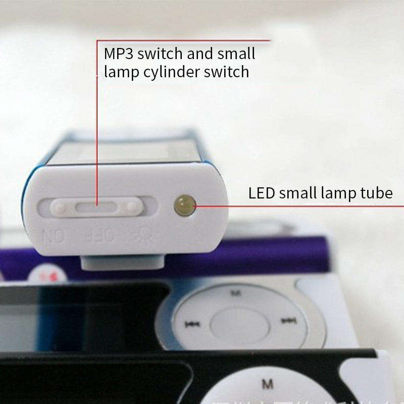 เครื่องเล่น MP3 ขนาดเล็ก ผลิตจากโรงงาน ตัวเครื่องทำจากโลหะผสมสังกะสี หน้าจอ 2.0 นิ้ว ช่องใส่การ์ด TF คลิปหนีบด้านหลัง แบตเตอรี่ใช้งานได้ 4 ชั่วโมง หลายสี เครื่องเล่นเพลงสำหรับออกกำลังกาย พร้อมพอร์ต USB 2.0
